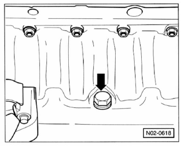 - Ölablassschraube -pfeil- aus der ölwanne herausdrehen und altöl ganz ablassen.