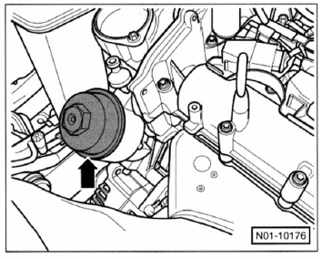 - 1,4-/1,6-L-fsi-motor/dieseimotor: deckel am filtergehäuse abschrauben, damit das öl aus dem filtergehäuse in die ölwanne ablaufen kann.