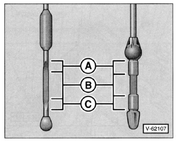Liegt er im bereich - c - , muss öl bis zum bereich - b - nachgefüllt werden. Bei einem ölstand im bereich - a - darf kein motoröl nachgefüllt werden.