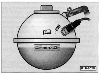 - Der kühlmittelstand soll bei kaltem motor (kühlmitteltemperatur ca. +20 C) zwischen der max- und der minmarkierung (gerasterter bereich) am ausgleichbehälter liegen. Bei warmem motor darf der kühlmittelstand etwas über der max-markierung stehen.