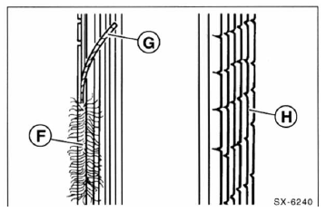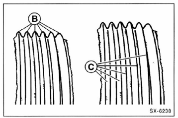 - Wenn eine oder mehrere dieser beschädigungen vorhanden sind, keilrippenriemen unbedingt ersetzen, siehe seite 199.