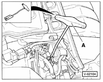 - Stecker mit haken - b - entriegeln und abziehen, zum beispiel mit vw-t10118.