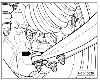 - Staubkappe für kugelgelenk der spurstange -pfeil 1- links und rechts mit lampe anstrahlen und auf beschädigungen überprüfen.