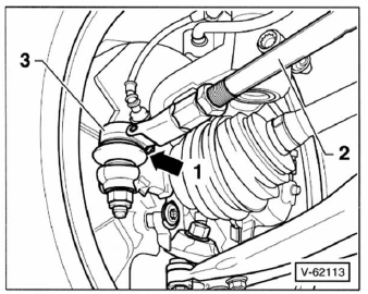- Spurstange - 2 - links und rechts kräftig von hand hinund herbewegen. Das jeweilige kugelgelenk - 3 - darf kein spiel aufweisen, andernfalls spurstangengelenk ersetzen, siehe seite 150.