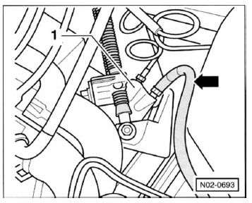 - Staubkappe vom entlüftungsventil am kupplungs-nehmerzylinder- 1- abziehen. Entlüftungsventil reinigen.
