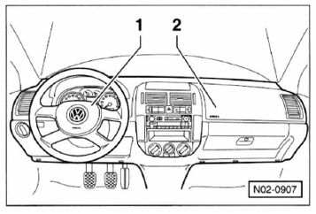 Erkennungsmerkmal für den airbag ist der schriftzug "airbag " auf der polsterplatte des lenkrades beziehungsweise auf der abdeckung an der rechten seite der armaturentafel.