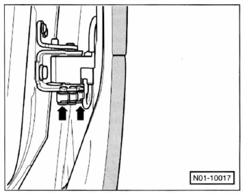 - Türfeststeller an den mit pfeilen gekennzeichneten stellen mit dem schmierfett vw-g 000 150 schmieren.