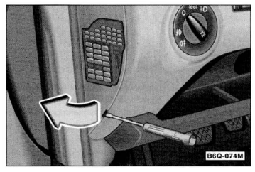 - Golf: mit einem schraubendreher oder einem kunststoffkeil, zum beispiel hazet 1965-20, seitliche klappe links aus der armaturentafel heraushebeln -pfeil-. Der sicherungskasten befindet sich hinter der klappe.