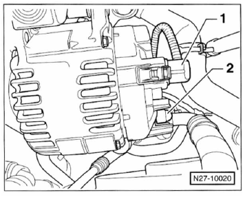- (D+)- und (b+)-leitung am generator abklemmen, siehe abschnitt "1,4-l-benzinmotor".