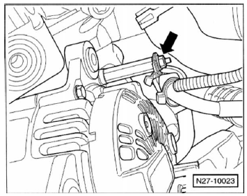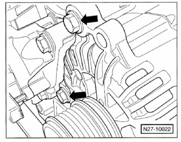 - Halter mit riemenspanner ausbauen, dazu mutter - 2 - abschrauben.