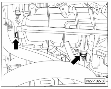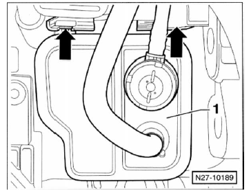 - Golf: behälter für aktivkohlefilter - 1 - nach oben aus der halterung -pfeile- herausziehen und mit angeschlossenen schläuchen zur seite legen, siehe abbildung n27- 10189 im abschnitt 1,6-l-benzinmotor.