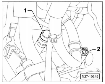 - Kühlmittelschlauch aus der halterung - 1 - herausziehen.