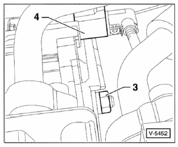- Steckkupplungen der ladeluftleitung - 3 - trennen. Dazu mit einem schraubendreher sicherungsklammer - 1 - ziehen, steckkupplung entriegeln und ladeluftleitung abziehen.