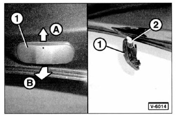 - Scheibenwaschdüse - 1 - nach oben drücken -pfeil aund unten aus der motorhaube herausziehen -pfeil b-.