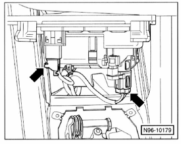 - An der rückseite des handschuhfachs stecker vom schlüsselschalter abziehen, 2 rastnasen entriegeln und schalter aus dem handschuhfach herausziehen.