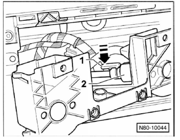 - An der rückseite des adapters rastnase - 1 - drücken -pfeil- und biegsame welle - 2 - für luftverteilerklappe aus dem adapter herausziehen.
