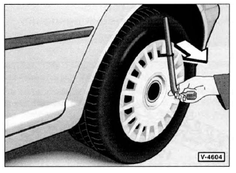- Fahrzeug mit dem wagenheber so weit anheben, bis das rad vom boden abgehoben hat, siehe seite 63.