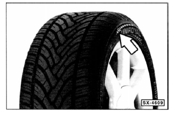 Hinweis: laufrichtungsgebundenes reserverad bei einer reifenpanne nur vorübergehend entgegen der laufrichtung montieren. Insbesondere bei nässe empfiehlt es sich, die geschwindigkeit den fahrbahnverhältnissen anzupassen.