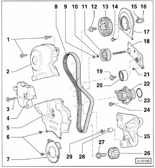 - Zahnriemen bei wiederverwendung vor dem ausbau laufrichtung mit kreide oder filzstift markieren. Auf verschleiß prüfen
