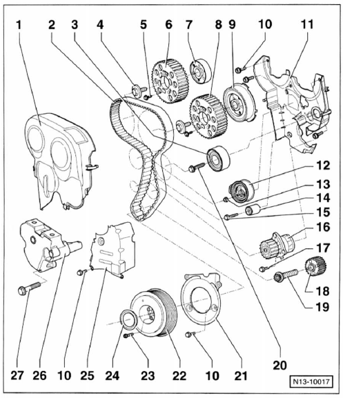 Volkswagen Golf / Volkswagen Golf Reparaturanleitung / Motor-mechanik / 2,0-I-dieselmotor 100/103 kw / Zahnriementrieb