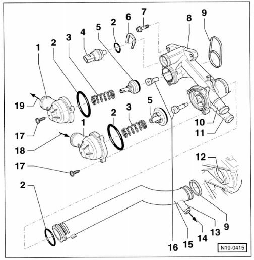 - Kühlmittelregler (thermostat) öffnungsbeginn bis öffnungsende: langes thermo-element: +87" bis "102i kurzes thermo-element: +103' bis "im"