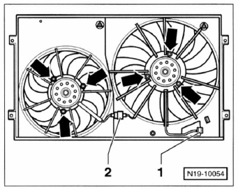 - Muttern -pfeile- herausdrehen und lüfter vom lüftergehäuse abnehmen.