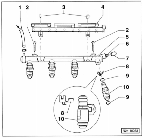 Volkswagen Golf / Volkswagen Golf Reparaturanleitung / Motor-management / Benzin-einspritzanlage / Saugrohr/kraftstoffverteiler/einspritzventile