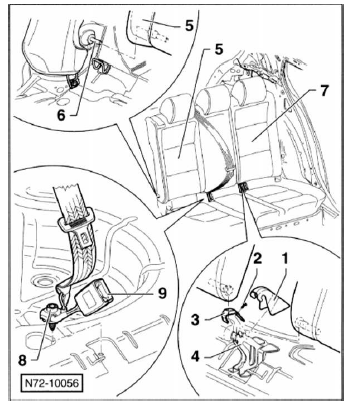 - Schraube - 8 - herausdrehen und sicherheitsgurtschloss - 9 - vom fahrzeugboden abnehmen.