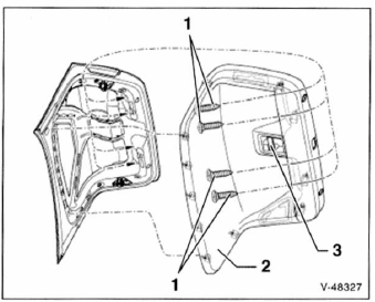 - Bowdenzug am notöffnungsgriff - 3 - aushängen und verkleidung - 2 - von der kofferraumklappe abnehmen.