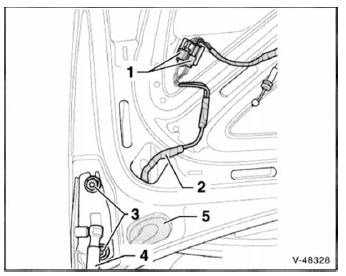 - Steckverbindungen - 1 - trennen und kabelstrang - 2 - mit gummitülle - 5 - aus der kofferraumklappe herausziehen.