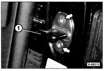 - Falls die sollwerte nicht eingehalten werden, schließbügel an der karosserie abschrauben und türscharniere lockern. Dazu oben scharnierschrauben - 5 - und unten scharnierschrauben - 1 / 2 - lockern.