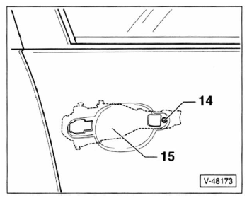 - Schraube - 1 4 - aus dem lagerbügel - 1 5 - für türaußengriff herausdrehen. Hinweis: der lagerbügel sitzt hinter dem türaußenblech.