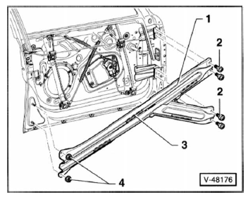 - Seitenaufprallschutz - 1 - mit dämpfungsmatte - 3 - vom türinnenteil abnehmen.