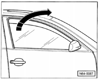- Türfensterscheibe hinten anheben und in pfeilrichtung nach vorn aus der tür herausschwenken.