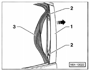- Türfensterscheibe - 1 - so weit herunterfahren, bis die klemmschrauben - 3 - in den montageöffnungen zugänglich sind.