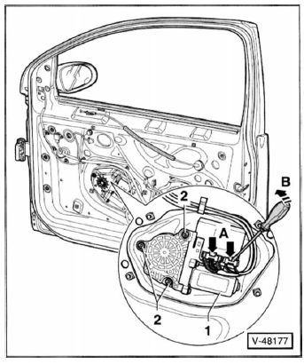 - Mit einem schraubendreher stecker -pfeile a- in pfeilrichtung - b - entriegeln und vom fensterhebermotor - 1 - abziehen.
